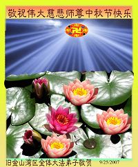 Tous les pratiquants de Taiwan, les pratiquants de Hong Kong, tous les pratiquants de Turquie, les pratiquants du Macao, de Hollande et de San Francisco aux Etats-Unis et les pratiquants du Missouri des Etats-Unis souhaitent respectueusement au vénérable Maître un joyeux Festival de la mi-automne!