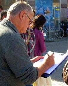 Après avoir regardé les photos de Gao Rongrong, une pratiquante de Falun Gong défigurée par la police, un homme, secoué par les larmes a dit aux pratiquants "Qu'est ce qui s'est passé ? Racontez moi son histoire. " En entendant l'histoire , il a pris le stylo et a signé la pétition contre la persécution, Il a demandé à répétition "Que puis-je faire pour eux ?"
