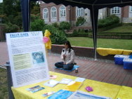 Il y a eu aussi des enfants qui avaient appris les exercices à un stand d'information l'année dernière et qui étaient heureux de pouvoir les essayer de nouveau. Une petite fille s'est assise en position de lotus et a pratiqué l'exercice de méditation, semblant très paisible malgré le bruit de la musique autour d’elle.