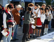 Plusieurs délégations chinoises et des groupes de touristes ont été attirés par les banderoles et les photos alors qu’ils passaient par Karlsplatz. La plupart étaient plus que disposés à accepter le matériel clarifiant les faits. Certains ont voulu démissionner sur place de la Ligue des jeunes communistes ou des Jeunes Pionniers. Quelques-uns, toutefois, ne comprenaient pas et considéraient que c’était une honte pour le peuple chinois. Les pratiquants en espérant qu'ils seraient en mesure de voir à travers la véritable nature perverse du PCC, leur ont patiemment expliqué que le PCC n'est pas la Chine et que pendant cinq mille ans de culture chinoise le pervers PCC n’existait pas.
