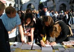 À la question pourquoi il signait la pétition condamnant le prélèvement d’organes sur des pratiquants du Falun Gong de leur vivant, un jeune homme d’Espagne a répondu dans un chinois impeccable : "Beaucoup de Chinois ne peuvent pas s’exprimer librement en Chine continentale. J'espère (que grâce à ma signature) ils pourront à l’avenir tous s’exprimer librement et sortir. Je pense que beaucoup de personnes en Europe ou aux États-Unis ne sont pas au courant de ces choses. Ceux qui ne peuvent pas s’exprimer librement sont bien tristes. " Sa compagne, Mme Chao, a estimé que chacun a des droits. Le prélèvement d’organe est immoral et devrait être condamné par tout le monde.