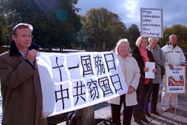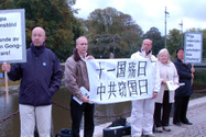Le porte-parole, Peter, a prononcé un bref discours. Il a dit: "Le 1er octobre est le jour où les chinois ont perdu leur nation, le jour où le PCC nous a volé notre nation. La fête nationale devrait être un jour où les gens sont heureux, mais cette journée génère de la tristesse chez les chinois. En Chine, des milliers de pratiquants de Falun Gong sont tués et leurs organes sont prélevés et vendus pour le profit. En dehors de Chine, beaucoup de chinois outremer se voient refuser leurs visas lorsqu'ils retournent en Chine, leurs droits à retourner là-bas et à se réunir avec leur famille et leurs amis leur sont ôtés. Tant que la dictature du PCC existera ne serait-ce qu'une journée, la culture et les valeurs traditionnelles chinoises seront sous en berne pendant une journée. Le Jour National du PCC est un jour où les chinois ont perdu leur nation. Le PCC n'est pas la Chine."