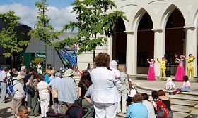 Il y a eu aussi un petit spectacle de danses traditionnelles présentées sur un podium par des pratiquantes de Falun Gong et une démonstration des exercices en costume traditionnel. Pendant la journée, lorsque le festival s'est conclu, le groupe du Falun Gong a pris part au défilé de clôture de l'activité.