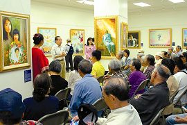 À la cérémonie d'ouverture, le fameux éditeur M. Huang Yuzhen a fait un discours de félicitations. M. Huang a 90 ans et est chroniqueur pour le journal Epoch Times. Il a dit : "L'exposition offre une grande opportunité pour la population chinoise d'apprendre quelque chose à propos du Falun Gong. Nous vivons aux Etats-Unis et avons la liberté d'apprendre les histoires véridiques de pratiquants de Falun Gong par différents moyens. Ces dernières 8 années, j'ai observé de près le groupe du Falun Gong. La propagande utilisée par le Parti communiste chinoise (PCC) pour justifier sa politique de persécution consiste en mensonges et elle est contre la culture chinoise et immorale. La persécution du Falun Gong par le PCC montre clairement au monde que le PCC est une secte perverse. Les huit dernières années nous ont aussi fait savoir que le Falun Gong est le seul espoir pour le futur de la Chine."
