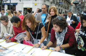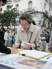 Tous ceux qui se sont arrêtés sont restés sous le choc en apprenant la brutalité de la persécution. Ils ont été dégoûtés par les prélèvements d'organes pratiqués à vif sur des pratiquants de Falun Gong. Ils ont signé leurs noms pour condamner le PCC et soutenir les pratiquants de Falun Gong et les démissions du Parti. Un journaliste d'EFE, la plus grande agence de presse en Espagne, est passé par là et a pris quantité de photos.