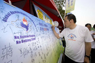 Le Relais de la flamme des droits de l'homme a reçu un large soutien d'athlètes participant aux Jeux nationaux d'athlétisme à Taïwan. Les 21 et 22 octobre, plus de 7000 signatures ont été collectées et environ 600 athlètes ont accepté de participer à une course symbolique lorsque la torche arrivera à Taïwan l'an prochain.