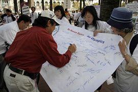 Un passant nommé Scott a déclaré qu’il avait pris une décision après avoir écouté les discours. Il n’achèterait plus aucun produit fabriqué en Chine. Concernant les Jeux Olympiques qui doivent se dérouler à Pékin l’année prochaine, il a dit que Pékin n’aurait pas du être sélectionné pour accueillir les Jeux.