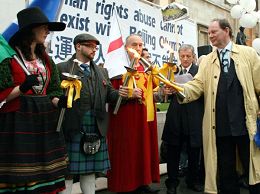Le Vice-président du Parlement européen Edward McMillan-Scott a dit : ‘’ Il n’est pas correct qu’ils puissent continuer leurs atteintes aux droits de l’Homme et tenir les Jeux Olympiques comme si rien ne se passait. Nous sommes ici aujourd’hui afin de dire qu’il doit y avoir des changements en Chine avant que les Jeux Olympiques puissent avoir lieu l’année prochaine, nous, en tant que membres du Parlement Européen, membres du Parlement Britannique. ‘’