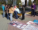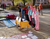 Jeudi à Presov, était un jour plutôt pluvieux, mais les pratiquants n'ont pas moins installé leur stand avec une table et demandé aux passants de signer la pétition. Les gens n'ont pas été découragés par le mauvais temps et ils sont venus signer la pétition même sous un parapluie. Beaucoup de gens se souvenaient de précédents événements et des pratiquants et ont demandé si la situation en Chine s'était améliorée. Malheureusement, les pratiquants n'ont pu que leur dire que la persécution continuait secrètement