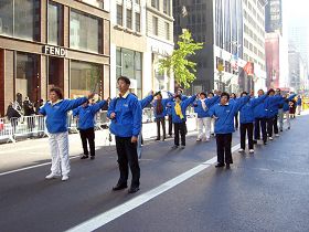 Le groupe de Falun Dafa était composé d’une équipe faisant des démonstrations des exercices et de la troupe des tambours de taille. Sur la banderole à l'avant on pouvait lire : " Vérité, Compassion, Tolérance " et " Falun Dafa est bon ". De nombreuses personnes parmi le public ont applaudi avec enthousiasme la performance des pratiquants de Falun Gong.