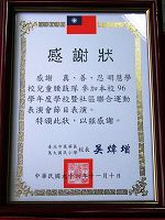 Récemment, la troupe des tambourins de ceinture de l’école Minghui, composée d’enfants d’âges allant de 5 à 13 ans a été invitée à la cérémonie d’ouverture du 30ème anniversaire de l’école élémentaire de Taipei. L'école leur a attribué une récompense d’appréciation pour leur performance.