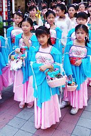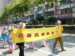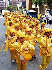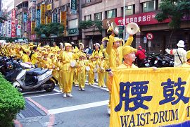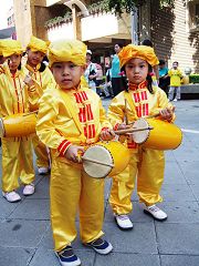 Les pratiquants du Falun Gong ont organisé un défilé de promotion de l’exposition d’art dans la ville de Yunghe. Les jeunes pratiquants de l’Ecole Minghui participaient au défilé avec une troupe de tambours de taille et de fées célestes.