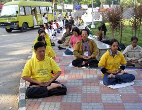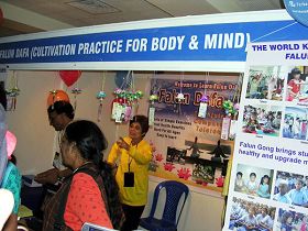 Le 30 novembre, dernier jour de l'événement, des pratiquants de Falun Gong de Taïwan, d'Inde et de Malaisie ont fait des démonstrations des exercices près de l'entrée de l'activité.