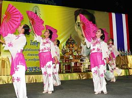 Le 5 décembre 2007 était le 80ème anniversaire du Roi et la Fête de Longue Vie de la Thaïlande. Toute la Thaïlande était en fête. Les pratiquants de Falun Gong ont participé aux activités de célébration locales et offert des programmes préparés avec soin. Ils ont incarné la grâce de Dafa et les caractéristiques propres aux pratiquants de Dafa. Leurs prestations ont été chaleureusement accueillies.