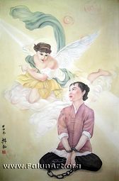Les trois peintures dépeignaient la beauté du Falun Gong et la terreur et la souffrance que les pratiquants ont supporté depuis le début de la persécution en 1999, ainsi que leur courage et leurs efforts pour traduire les responsables en justice. Ces trois oeuvres font partie d'une exposition plus vaste de pratiquants du Falun Gong et artistes dont certains ont eu une expérience de première main de la torture dans les camps de travai chinois.