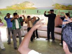 Comme le samedi il n’y a pas classe, seuls une dizaine d’élèves viennent à l’école pour jouer au football. Quand le principal Verkey leur a dit que deux pratiquants de Taïwan étaient venus enseigner les exercices, curieux ils se sont joints au groupe de pratique.