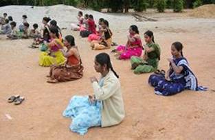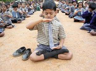 Cette école et une autre tout prés, l’Ecole Jyoti, ont toutes deux un sol de poussière et de sable. Les élèves s’assoient simplement sur le sol lorsqu’ils font le cinquième exercice. Les salles de classes ne sont pas très grandes et les élèves et les étudiants mangent leur déjeuner en s’asseyant dans les couloirs et utilisent leurs mains pour manger. Leur vie est simple et naturelle.