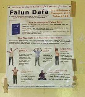 Affiche sur Falun Gong dans le campus.