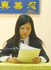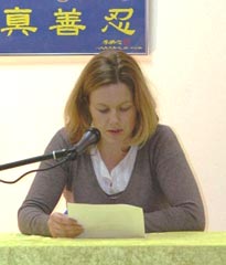 Hui Fang a partagé son expérience en étudiant la Loi et en s'examinant intérieurement. Elle a été capable d'abandonner l'attachement à voir les attachements des autres pratiquants, s'efforcer d'accomplir son rôle de particule de Dafa et harmoniser l'environnement de 'cultivation' d'ensemble. Elle a parlé de son travail de coordination pour le Spectacle de Nouvel an chinois à Paris ces dernières années. Face à différents attachements qui se sont manifestés elle a pris la Loi pour Maitre, et s'est diligemment et solidement cultivée pour sauver davantage d'êtres et répondre au standard d'un disciple de Dafa de la rectification par la Loi.