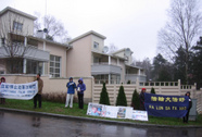 Sous la pluie, les quelques pratiquants ont demandé la fin immédiate de la persécution du Falun Gong par le Parti communiste chinois (PCC). Ils ont averti l'Ambassade chinoise de ne pas suivre le régime du PCC en persécutant les pratiquants de Falun Gong et de quitter le PCC le plus tôt possible pour s'assurer un bon futur.