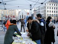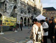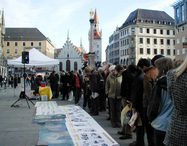 Les pratiquants de Falun Gong à Munich ont déployé des banderoles en soutien aux 17 millions de Chinois qui ont démissionné du PCC et révélé la collecte d’organes pratiquée par le PCC sur des pratiquants de Falun Gong de leur vivant. Les gens de différents pays sont restés patiemment debout devant la table d’information afin de signer la pétition demandant la fin de la persécution et destinée au gouvernement allemand. Une femme qui a signé la pétition a dit à un journaliste que l’attitude du PCC est incompréhensible. Elle a dit qu’elle ne pouvait pas garder le silence face à cela et qu’on devait mettre fin à ces atrocités. Une autre femme qui avait habité en Tchécoslovaquie a dit au journaliste qu’elle savait très bien ce qui se passait en Chine, parce que le Parti communiste procède toujours de la même manière.