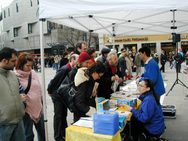 Les pratiquants de Falun Gong qui étaient présents à l’activité ont dit que de plus en plus de gens voulaient recevoir du matériel de clarification de la vérité. Les gens désirent entendre parler de Falun Dafa. Des groupes de touristes chinois ont aussi silencieusement écouté les extraits des Neuf commentaires sur le Parti communiste diffusés par la Radio Son de l’Espoir. Ils ont aussi lu attentivement les informations qui se trouvaient sur les panneaux. Ils ont tous accepté une copie des Neuf commentaires et d’autres documents de clarification de la vérité. De nombreuses personnes sont restées un bon moment pour discuter avec les pratiquants du Falun Gong de l’importance et des méthodes pour démissionner du PCC et de ses organisations affiliées.