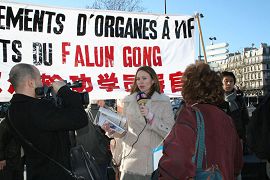 Les pratiquants portaient des banderoles avec les messages « Mettez fin à la collecte d’organes sur pratiquants du Falun Gong vivants », « Ceci arrive chaque jour en Chine » et « Coalition d'Investigation sur la Persécution du Falun Gong ». Ils tenaient en main des documents qui révélaient les faits de la persécution et des photos de ceux qui y ont perdu la vie , révélant au monde les atrocités barbares qui se déroulent en Chine. A travers un porte voix, les pratiquants ont diffusé en français le Rapport Kilgour.Matas (Matas & Kilgour Report) sur les allégations de prélèvements d’organes sur les pratiquants du Falun Gong en Chine.