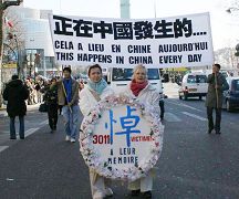 Mme Marie Françoise Lamperti, la Présidente d’ADH (Agir contre les droits de l'homme) a dit : « La Chine est la pire violatrices des droits de l’homme dans le monde, y compris les violations au droit à la vie. En chine un grand nombre de pratiquants du Falun Gong ont été condamnés à des peines d’emprisonnement. C’est pour exposer ses violations des droits de l’homme que notre association se trouve ici. »