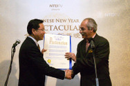M. Guillermo Linares, Commissaire du Bureau des Affaires des Immigrés du Maire de New York remet la proclamation du Maire au Président de NTDV Li Zong. |