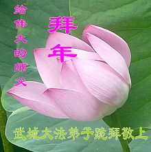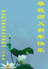 A l’approche du Nouvel An lunaire 2007, au nom de tous les pratiquants de Falun Dafa de la province du Hubei et des gens ordinaires qui se sont éveillés à la vérité, nous transmettons nos souhaits du Nouvel An les plus sincères et les plus humbles au Maître. Nous prendrons l'enseignement du Maître à coeur et maintiendrons des pensées droites à chaque moment. Nous continuerons à clarifier la vérité et à sauver les êtres pour accomplir nos voeux préhistoriques.