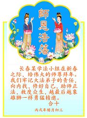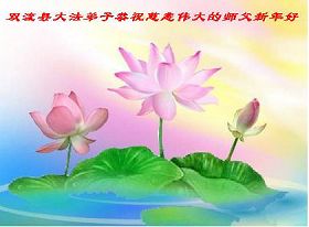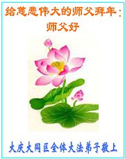 Tous les pratiquants de Falun Dafa de Datong, Daqing, province du Heilongjiang, souhaitent une Bonne et Heureuse Année au Grand Maître Compatissant!