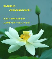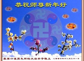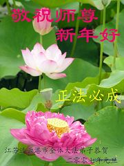 À l’arrivée de la nouvelle année, nous, les pratiquants de Jiangsu et tous les êtres vivants ne pouvons pas exprimer notre appréciation, notre respect et nos vœux avec la langue humaine. Nous, les pratiquants de Jiangsu, suivrons le Maître et marcherons sur ce dernier voyage de la rectification par la Loi plus rationnellement et avec un clair esprit. Au dernier moment de la rectification par la Loi, nous accomplirons le souhait du Maître en avançant diligemment et en faisant bien les trois choses.