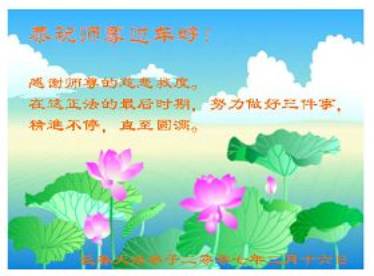 Ce qui suit est une sélection des cartes de souhaits du Nouvel An envoyées par quelques pratiquants de Falun Dafa des régions mentionnés ci-dessus :