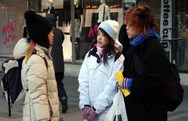 Les passants se sont arrêtés pour lire les panneaux d’informations sur les Neuf commentaires sur le Parti communiste chinois , et ont demandé les uns après les autres des informations complémentaires. Deux jeunes Chinois ont été bouleversés en apprenant la collecte d’organes sur des pratiquants de Falun Gong de leur vivant. Juste avant de partir ils ont fait le geste traditionnel chinois des deux mains pressées devant la poitrine indiquant leur gratitude. Ils ont pris un journal chinois pour le faire lire à leurs parents.