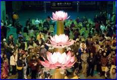 Le public a été émerveillé par les colonnes de lanterne de lotus. La conceptrice, Chu Mei-niang, qui a un diplôme des Beaux Arts, a dit qu’en choisissant le lotus comme thème, elle voulait montrer le style unique de la télévision New Tang Dynasty Television (NTDTV) et la teneur de la représentation du Spectacle. Elle a voulu révéler pleinement la signification profonde de l’élégance, la pureté et la magnificence de la culture traditionnelle chinoise et créer une allée qui mènerait le public dans un monde intérieur paisible et harmonieux.