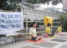 Les pratiquants protestent contre la persécution du Falun Gong devant l'ambassade de Chine et envoient des pensées droites chaque nuit. La protestation quotidienne a commencé il y a plus d’un an en décembre 2005. Au cours de la dernière année, les pratiquants ont surmonté beaucoup de difficultés et ont créé un bon environnement de cultivation.