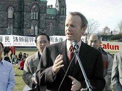 M. Stockwell Day fait un discours à un rassemblement soutenant le Falun Gong.