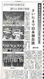 Le journal Japonais Saitama News, a aussi parlé de l’arrivée de la troupe, en disant que c’est plus grand concert mondial chinois qui sera en tournée dans 29 villes et apprécié par plus de 200 000 personnes. De sept représentations dans cinq villes, il y a quatre ans, lors de l’inauguration du Gala mondial de la NTDTV, à cette année, il y a eu environ 80 représentations dans 29 villes, le nombre de spectateurs devrait atteindre les 150 000 à 200 000 personnes.