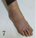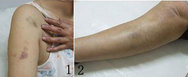 | La pratiquante âgée a perdu connaissance après avoir été battue. Une côte et un orteil ont été cassés (l’orteil est cassé est celui qui est entouré). | Des bleus dus aux chocs électriques. |