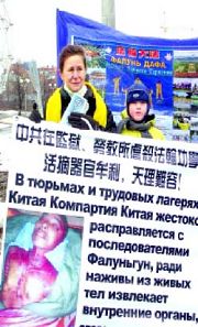 Pendant le weekend, les pratiquants de Falun Gong ont mis en place des banderoles et des panneaux d'information et "clarifié la vérité" aux passants à propos de la brutale persécution du Falun Gong par le PCC et de l'immense vague de démissions du PCC qui se produit en Chine. Un jeune pratiquant faisait la démonstration des cinq séries d'exercices du Falun Gong. Les passants se sont arrêtés pour lire l'information affichée. Certains ont bavardaient avec les pratiquants, certains ont emporté des matériaux d'information à lire.