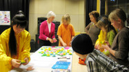 L'origami des fleurs de lotus a été aussi très populaire, et beaucoup d'enfants ont été surpris de pouvoir plier de si jolies fleurs et ont voulu en faire plusieurs. Le personnel de la Maison de la Jeunesse a voulu aussi essayer les exercices et le pliage des fleurs de lotus.