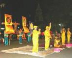 Les pratiquants ont fait la danse du drapeau du dragon, la danse fleur de prunier, la danse des fées et ils ont présenté les exercices du Falun Gong. Les représentations ont été très bien accueillies par les spectateurs. Les jeunes pratiquants de l’école Minghui ont chanté lors de la célébration. Les pratiquants ont aussi enseigné aux spectateurs la chanson « Falun Dafa est bon ».