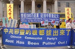 Mme Li, la porte parole pour le Centre pour Quitter le PCC a dit lors du rassemblement que le thème de cette activité était “La racine du Parti communiste chinois a été arrachée”. Elle a aussi parlé du lien qui existe entre la vague de démission du PCC et l’éveil de la population chinoise depuis la publication des Neufs commentaires sur le Parti communiste.