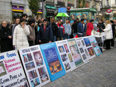 Avec ces activités, la place si triste semblait revenir à la vie. Les gens ont cessé de se bousculer et ont ralenti leurs pas pour venir voir les panneaux d’information exposant les atrocités commises par le Parti communiste chinois. De temps à autre on pouvait entendre des gens condamner ces atrocités et exprimer leur soutien aux activités contre la persécution.
