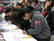 Sur la place, de plus en plus de personnes venaient lire les panneaux d’informations. Elles ont demandé des dépliants et ont voulu savoir de quelle manière elles pouvaient aider ces personnes innocentes persécutées en Chine. Quand ils ont appris que signer la pétition pouvait aider à mettre fin à la persécution, elles sont venus la signer sans aucune hésitation.