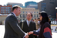 | Zhang Jiyan a annoncé sa défection de l’Ambassade chinoise au rassemblement de soutien aux vingt millions de retraits du PCC, Le député canadien Rob Anders (à gauche) serre la main de Zhang Jiyan (à droite) en signe de soutien. |