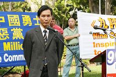 M. Nan Quan, Vice-président de l’association Vietnam en Australie (Branche de New South Wales), représentait des dizaines de milliers de membres en disant que le Parti communiste n’a pas seulement persécuté d’innombrables Chinois, mais aussi des millions de Vietnamiens. De nombreux Vietnamiens vivant en Australie aujourd’hui sont ceux qui n’ont pas pu tolérer le règne despotique du Parti communiste et ont risqué leur vie pour venir en bateau se réfugier en Australie. Nan Quan a exprimé sa compréhension et son soutien au peuple chinois qui a soif de liberté et de droits de l’homme. Il espère que les Chinois et les Vietnamiens vont bientôt se libérer de la tyrannie du Parti communiste et retrouver leur liberté.