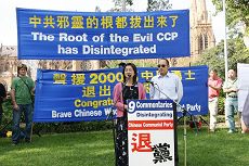 Lors du rassemblement, M. Gao du « Centre de Service à Sydney pour Quitter le PCC » a annoncé que 20 millions de Chinois courageux avaient percé le blocus de l’information de manière publique en annonçant qu’ils quittaient le Parti pervers et que cela montrait que la racine du spectre pervers du PCC avait été arrachée.