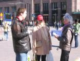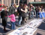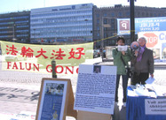 En ce beau jour ensoleillé, les passants ont été attirés par les banderoles, les bouleversantes photos de persécution et le discours de l'étudiante : "Je m’appelle Sunny et je suis venue de Chine en janvier à Helsinki pour étudier à l’université. L’après midi du 20 mars mon père, Zhang Weijie, qui vit dans la banlieue de la ville de Wuhang, a soudainement disparu. Après plusieurs jours d’investigation, ma famille a appris que mon père avait été enlevé dans la ville de Wuhang, par le ‘bureau 610’ une organisation semblable à la gestapo, alors qu’il rentrait à la maison de son travail, tout simplement parce qu’il pratique le Falun Gong. C’est la troisième fois que mon père est enlevé depuis juillet 1999 début de la persécution du Falun Gong. Parce que mon père a refusé de renoncer à sa croyance il a été soumis à un lavage de cerveau et emprisonné dans un camp de travail. A cette époque ma mère avait aussi été enfermée pendant un mois dans un camp de travail. C’est ainsi que ma famille heureuse et harmonieuse a disparue, mes grands parents ont été abandonnés seuls sans personne pour s’occuper d’eux et notre famille s’est retrouvée dans une grave difficulté financière. Plus tard ils ont été libérés mais ont été continuellement sous surveillance.