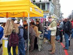 Les passants ont défilé en un flot continu. Ils voulaient en apprendre plus à propos de la persécution, et en particulier les détails concernant le prélèvement d’organes à vif sur des pratiquants de Falun Gong. Puis ils ont signé la pétition exprimant leur protestation contre la persécution et les atrocités.